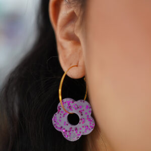 Nuestros pendientes y anillos están hechos artesanalmente en resina, y se pueden personalizar con los colores, rellenos o efectos que más te gusten: desde purpurina hasta flores, lentejuelas o tonos lisos.