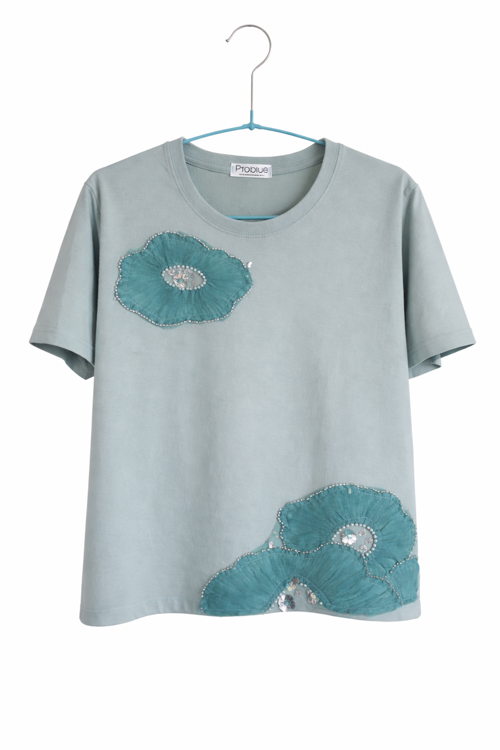 Camiseta Daphne en celeste empolvado, una pieza delicada y luminosa con detalles joya que elevan cualquier look. Diseñada para aportar un toque especial sin renunciar a la comodidad, es perfecta tanto para el día a día como para ocasiones más especiales. 💙✨