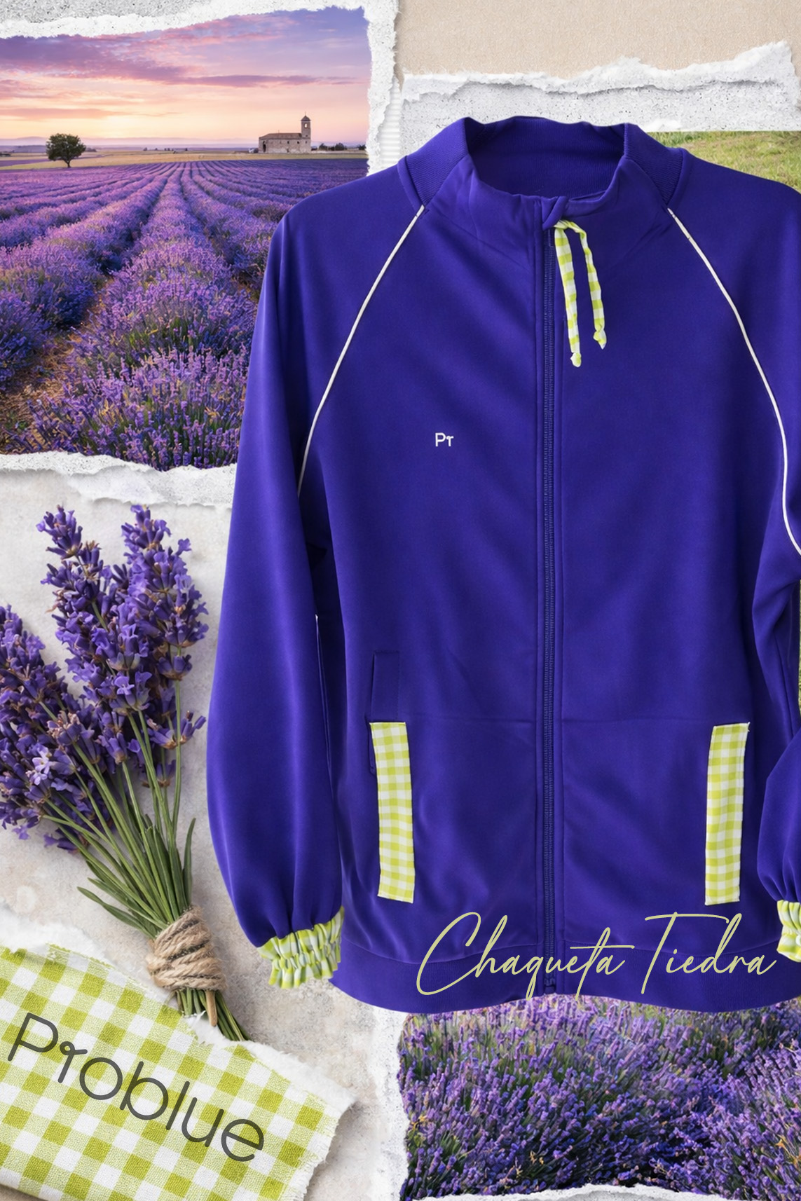 La Chaqueta Tiedra es una prenda de estilo sport con un aire elegante y femenino. Confeccionada en color negro, destaca por sus detalles deportivos y su toque coqueto, gracias a los puños y bolsillos en raso con estampado de vichy lima , que aportan personalidad y contraste al diseño.