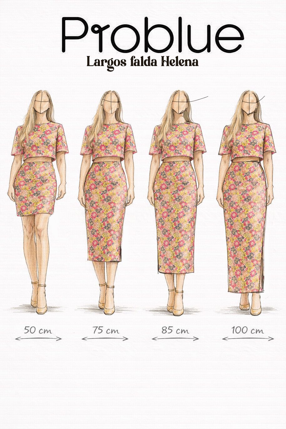 💙 Consejo Problue: cuanto más detalladas sean tus medidas, mejor podremos adaptar la falda a tu cuerpo. Si tienes alguna preferencia (más ajustada, más suelta, altura de cintura…), puedes indicarlo también.