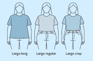 Puedes perdila long (por debajo de la cadera), regular (por la cadera) o crop (por debajo del ombligo)