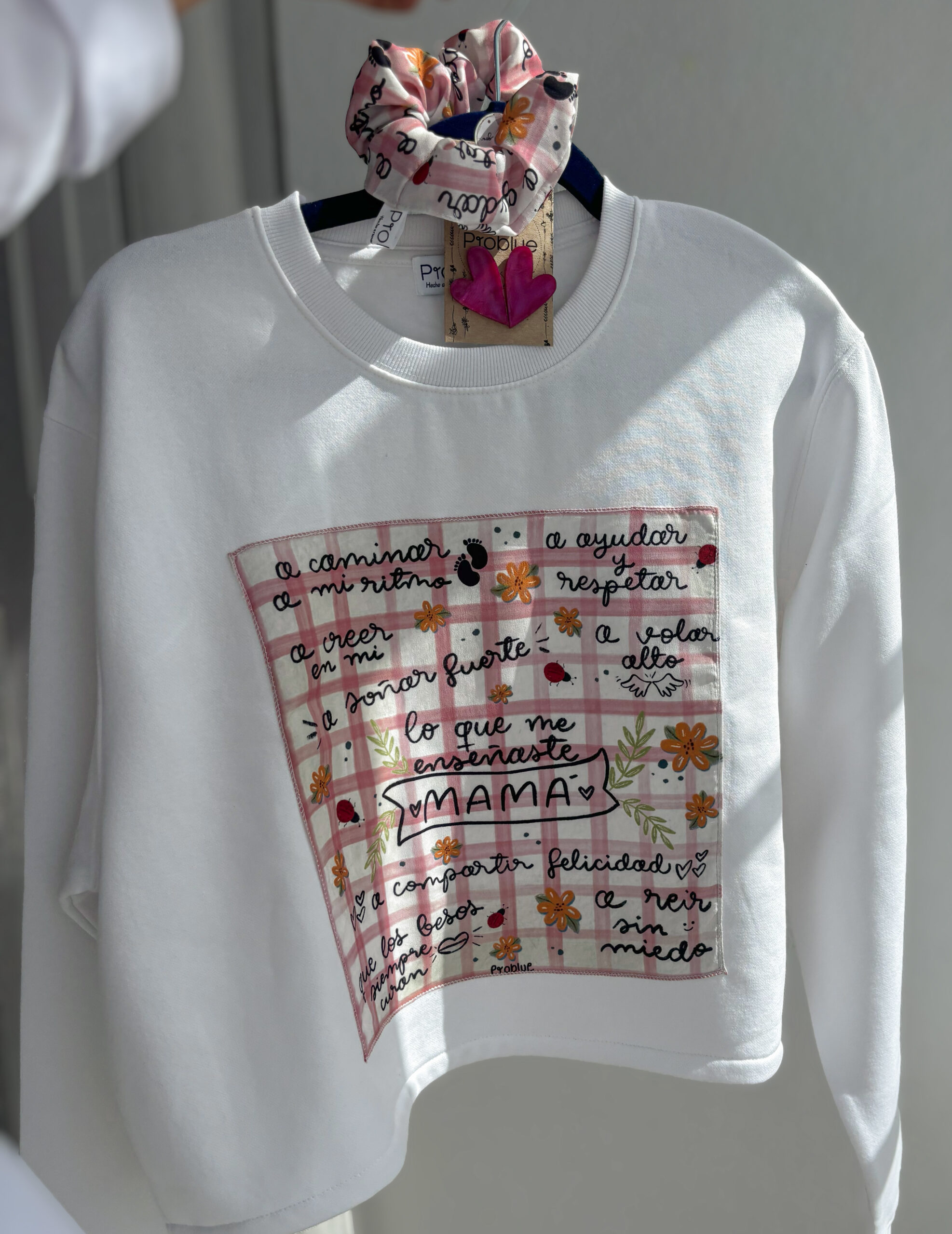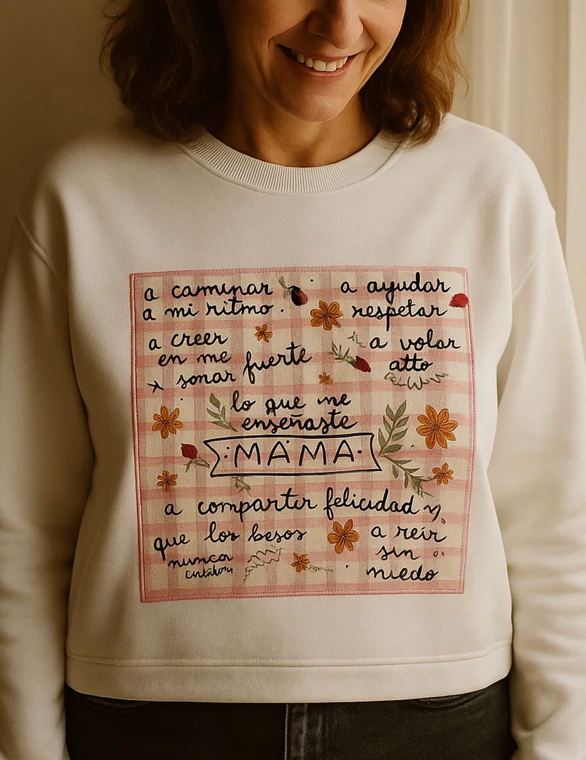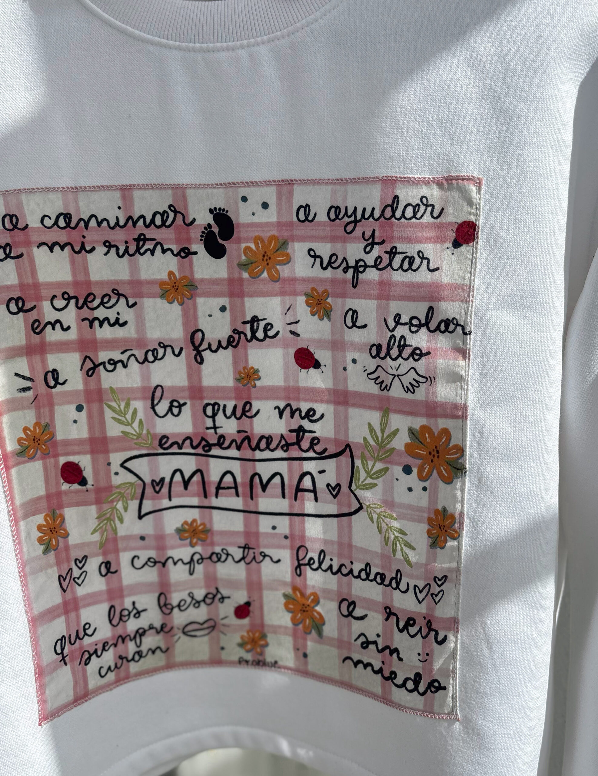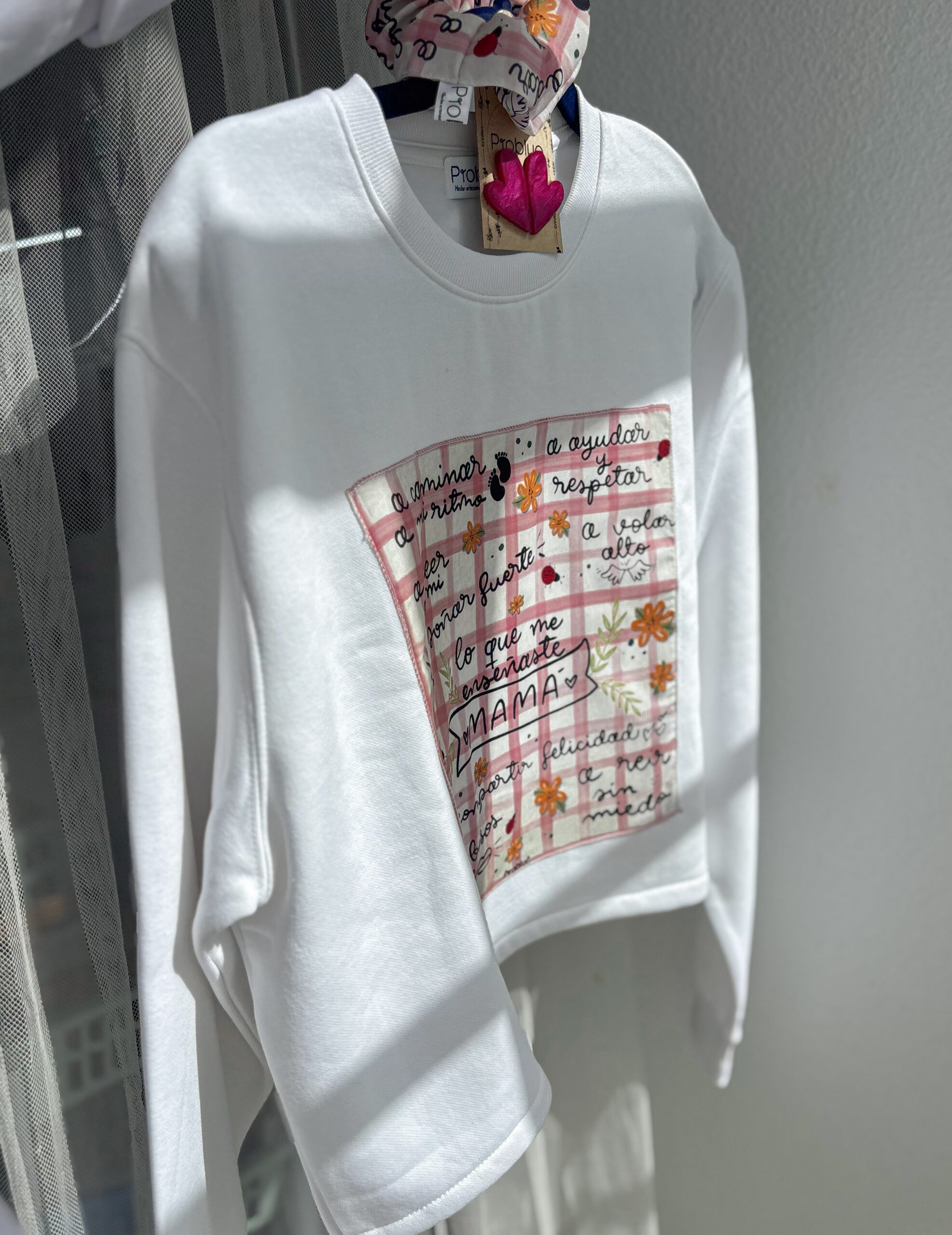 Sudadera Mamá con estampado sobre vichy rojo vintage.