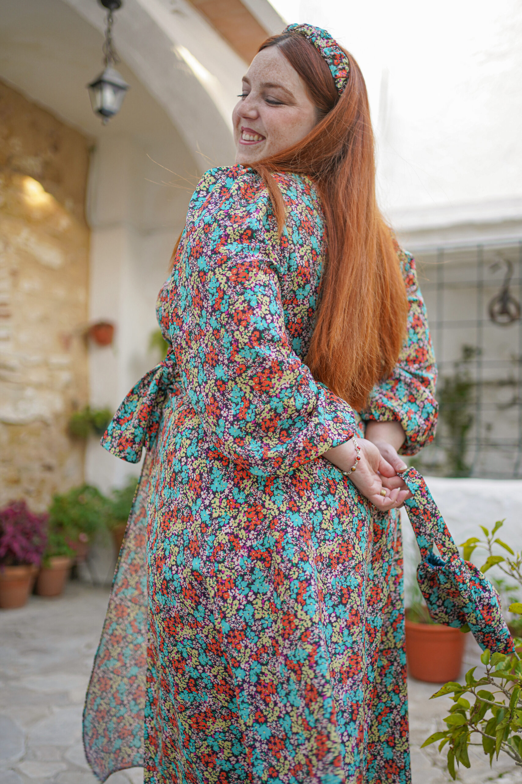El Vestido Flora está confeccionado en un delicado crepe estampado que destaca por su armoniosa combinación de tonos anaranjados, turquesas y amarillo pastel. Esta mezcla cromática aporta luz, frescura y un carácter muy especial a la prenda, convirtiéndola en una opción ideal para eventos en los que se busca un look elegante sin renunciar a la personalidad. Su estampado ha sido cuidadosamente seleccionado para lograr un equilibrio visual que favorece y estiliza, aportando dinamismo sin resultar recargado.
